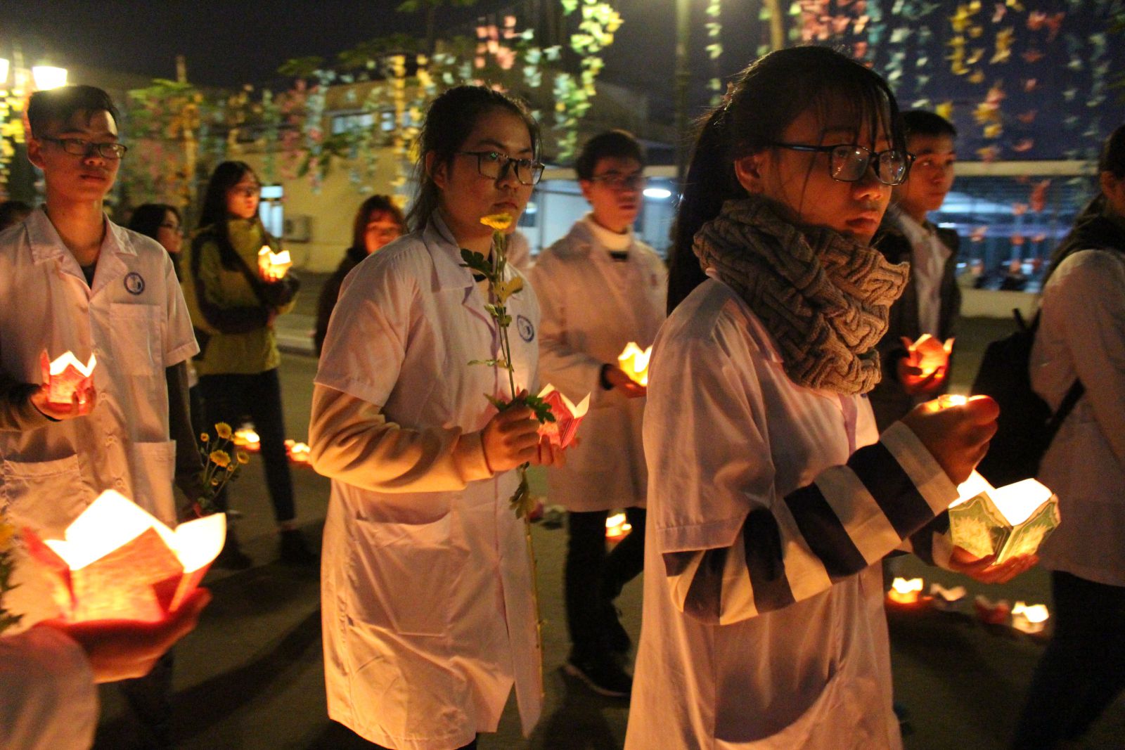 Bầu không khí trang nghiêm trong làn hương khói, dòng người hòa lẫn vào nhau, có màu áo blouse trắng tinh khôi của các thầy cô, y bác sĩ, các bạn sinh viên và thân nhân. Trên tay mỗi người là đóa cúc vàng hay một ngọn đèn hoa đăng sáng rực đi dâng hương. Bác Phan Ngọc Vương, 70 tuổi, trú tại Xã Tắc, TP. Huế, người đã lặng một hồi lâu trong không khí trang nghiêm, thanh tĩnh đã quả quyết: “Tôi sẽ hiến xác cho y học. Tôi làm hồ sơ và đã được thông qua, mong sẽ giúp được một phần nhỏ cho y học giải phẫu”.