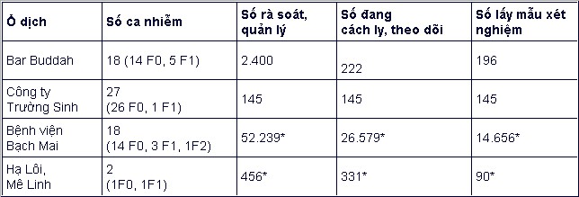 Thông tin ổ dịch hiện nay: