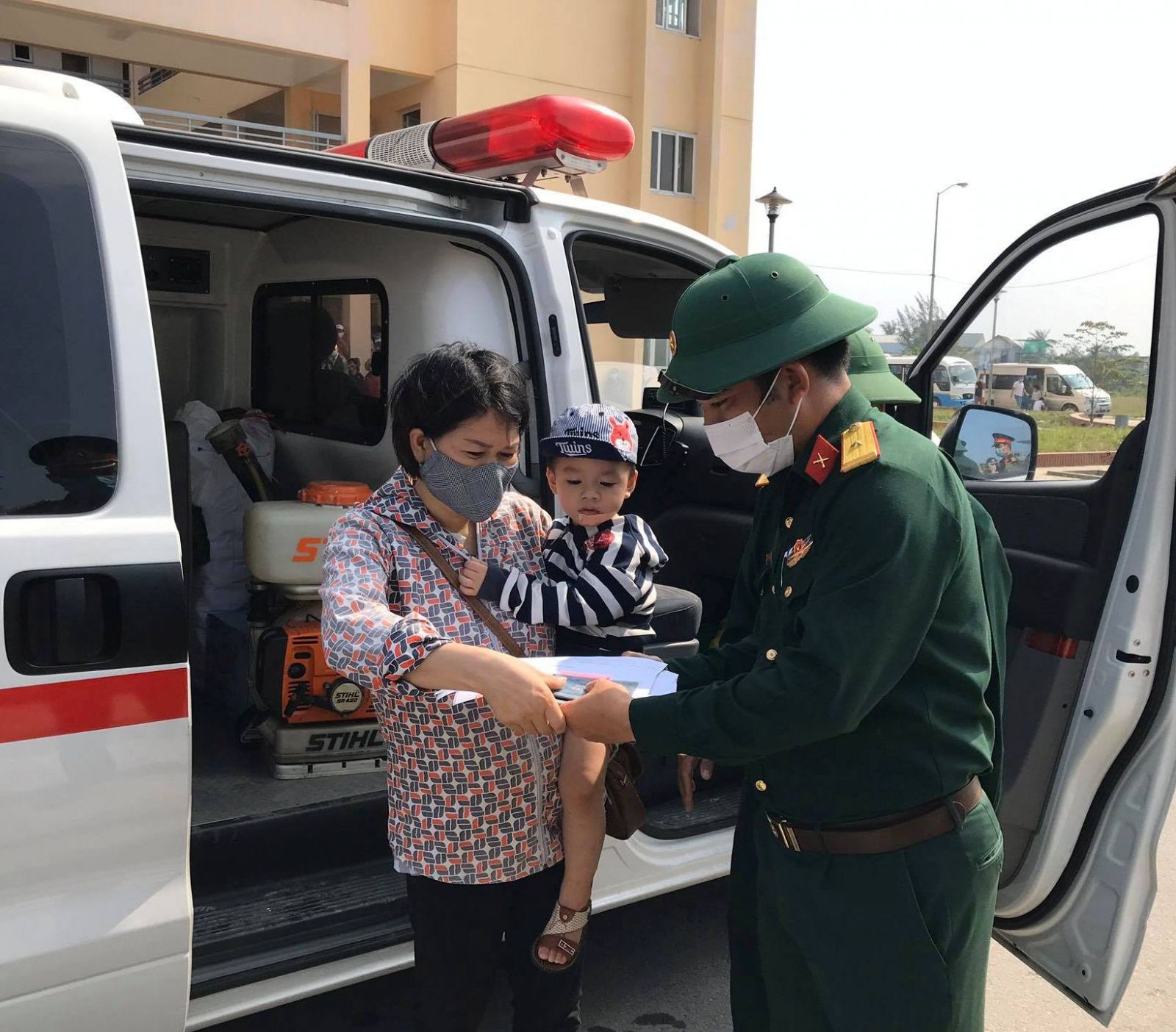 Chuẩn bị lên xe để ra ga tàu, mẹ con chị Chu Thị Vân (Nghệ An) vẫn muốn nán lại để nói lời cảm ơn thêm một lần nữa đối với các cán bộ, chiến sĩ đã chăm lo cho mình thời gian qua. Chị Vân xúc động: Vừa có con nhỏ, lại đang mang thai hơn 6 tháng, nên thời gian cách ly tập trung ở đây mẹ con tôi được các cán bộ, chiến sĩ quan tâm, giúp đỡ rất tận tình, chu đáo. Nay về, cũng được các chú bộ đội mua vé, cho xe chở lên tới ga tàu. Tôi biết ơn lắm, chắc chắn tôi sẽ nhớ và trân trọng mãi tình cảm của bộ đội Thừa Thiên Huế dành cho mẹ con tôi trong lúc khó khăn.