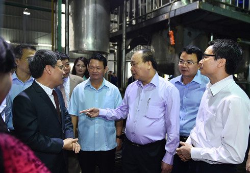 Thủ tướng tham quan dây chuyền sản xuất cao atiso của Công ty Traphaco Sapa tại tỉnh Lào Cai.