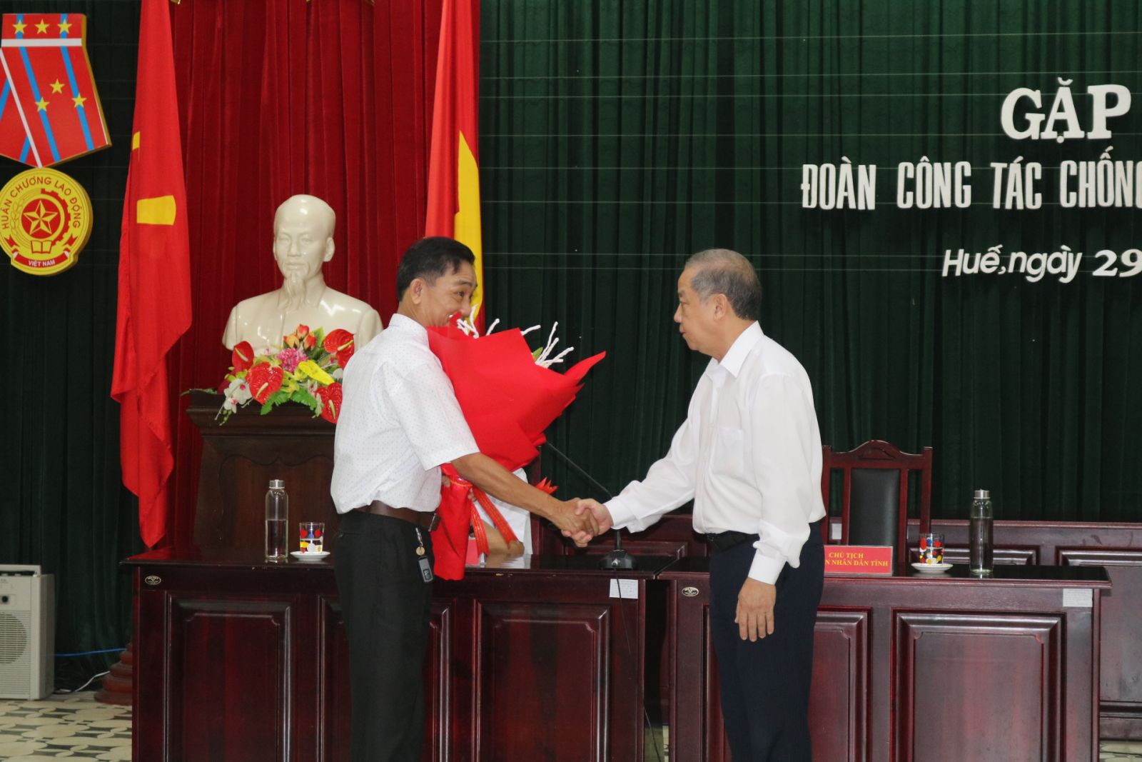 Chủ tịch UBND tỉnh tặng hoa và chúc mừng cho đại diện đoàn công tác
