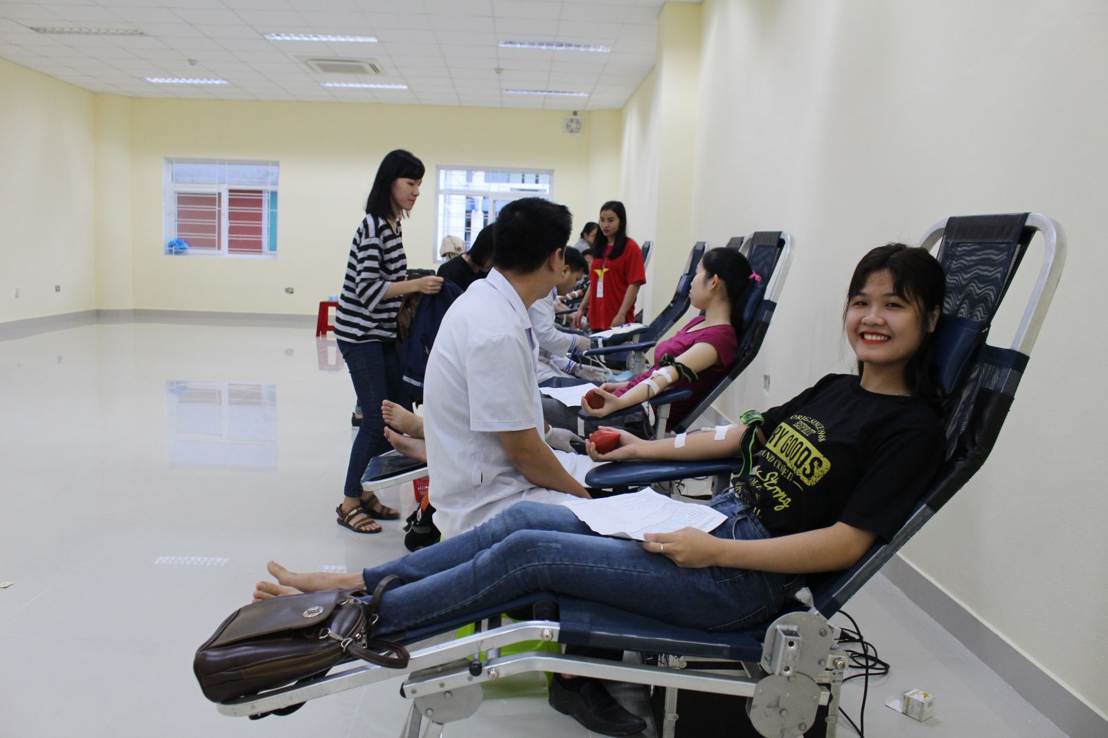 Nụ cười rạng rỡ của một bạn sinh viên khi hiến máu tình nguyện
