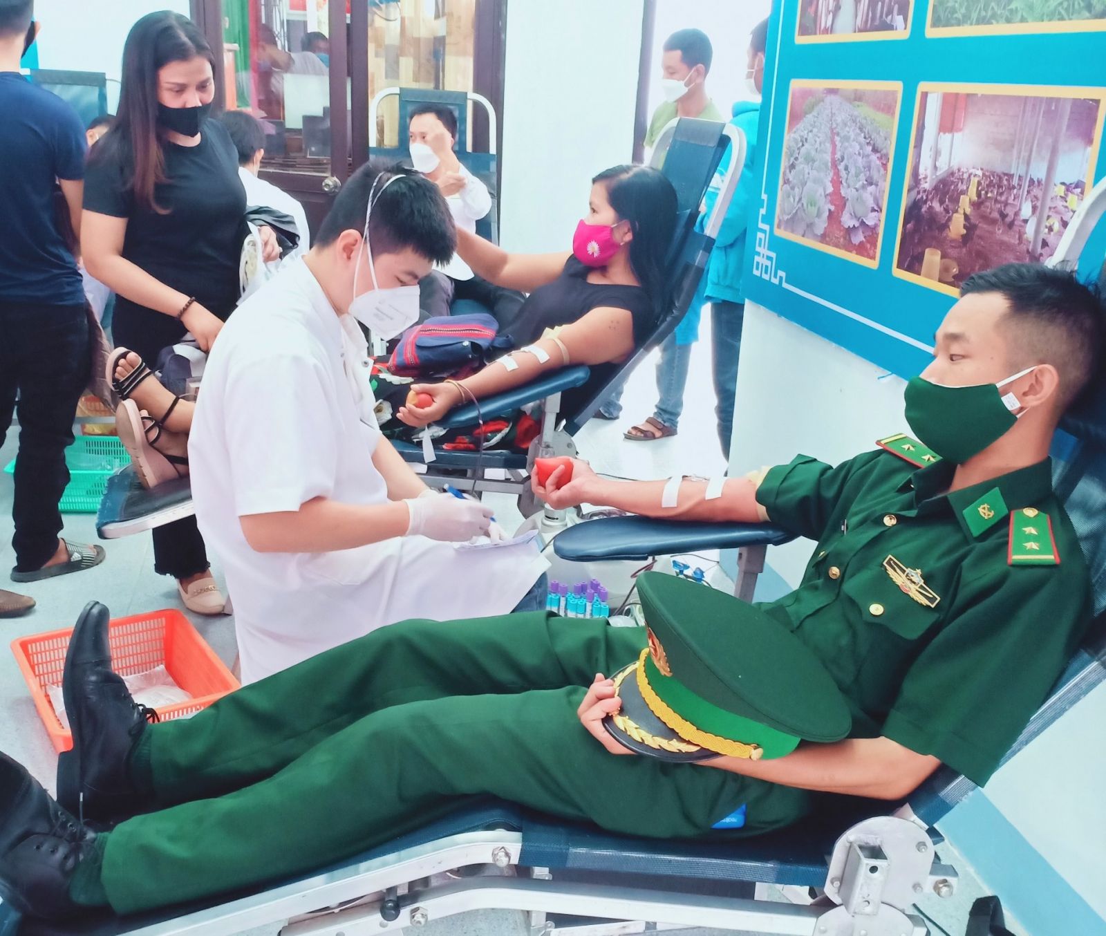 Cán bộ, chiến sĩ cùng người dân A Lưới tham gia hiến máu