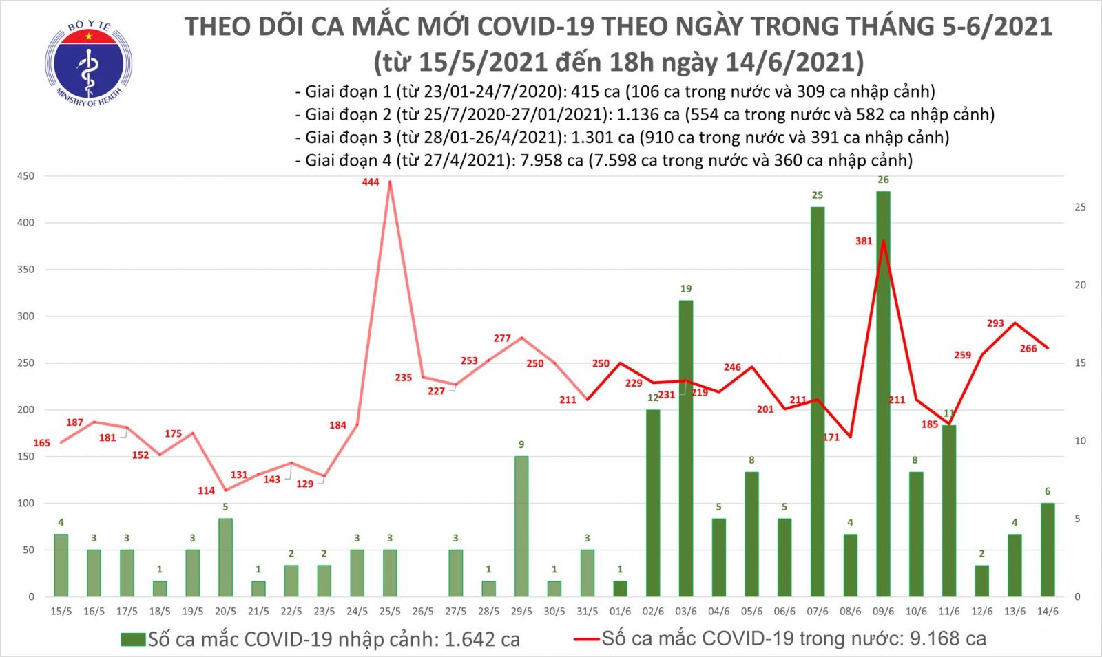 - Trong ngày 14/6, Việt Nam ghi nhận thêm 272 ca mắc mới: