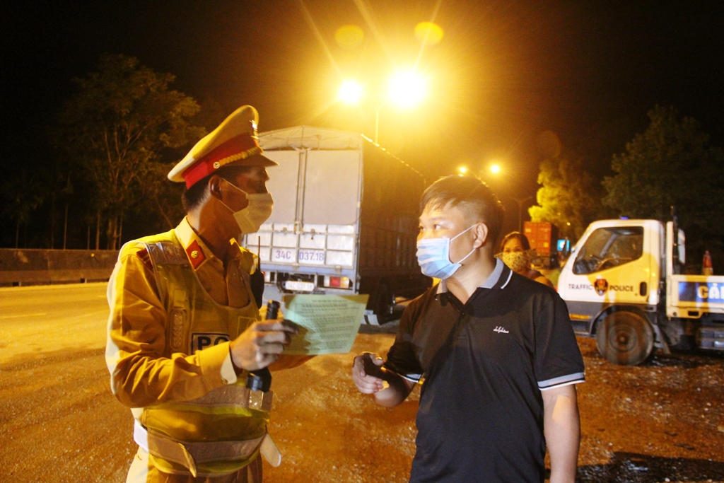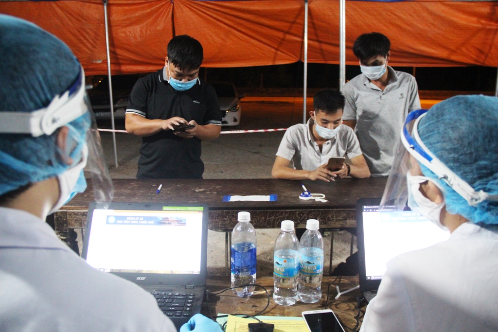 Khác với ca làm việc ban ngày, những ca làm việc xuyên đêm vất vả hơn. Tất cả phải thức trắng đêm. 1g sáng ngày 17/8, từng đoàn xe tải hướng Quảng Trị chạy dồn dập vào địa phận Thừa Thiên Huế. Theo tín hiệu của lực lượng CSGT, từng chiếc tấp vào lề, nối dài thành đoàn tại trạm chốt soát y tế đặt ngay thị trấn Phong Điền, huyện Phong Điền. Lần lượt các tài xế, xuống xe xuất trình giấy tờ và phải khai báo lịch trình để đoàn kiểm soát y tế hướng dẫn các thủ tục liên quan.