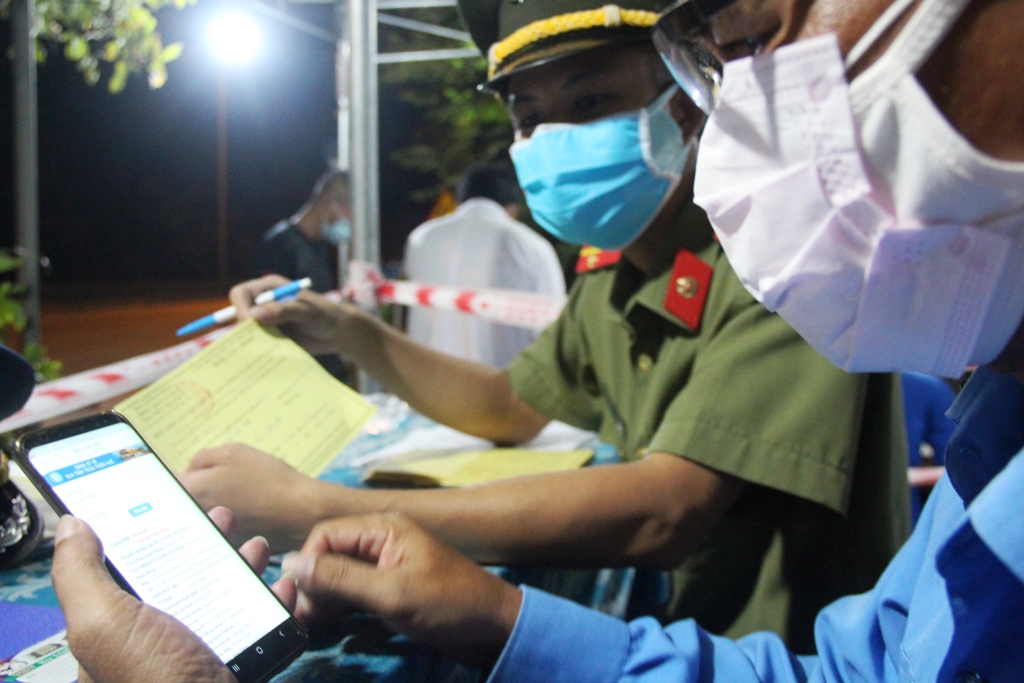 Lực lượng liên ngành kiểm tra đăng kí, khai báo của tài xế qua hệ thống online