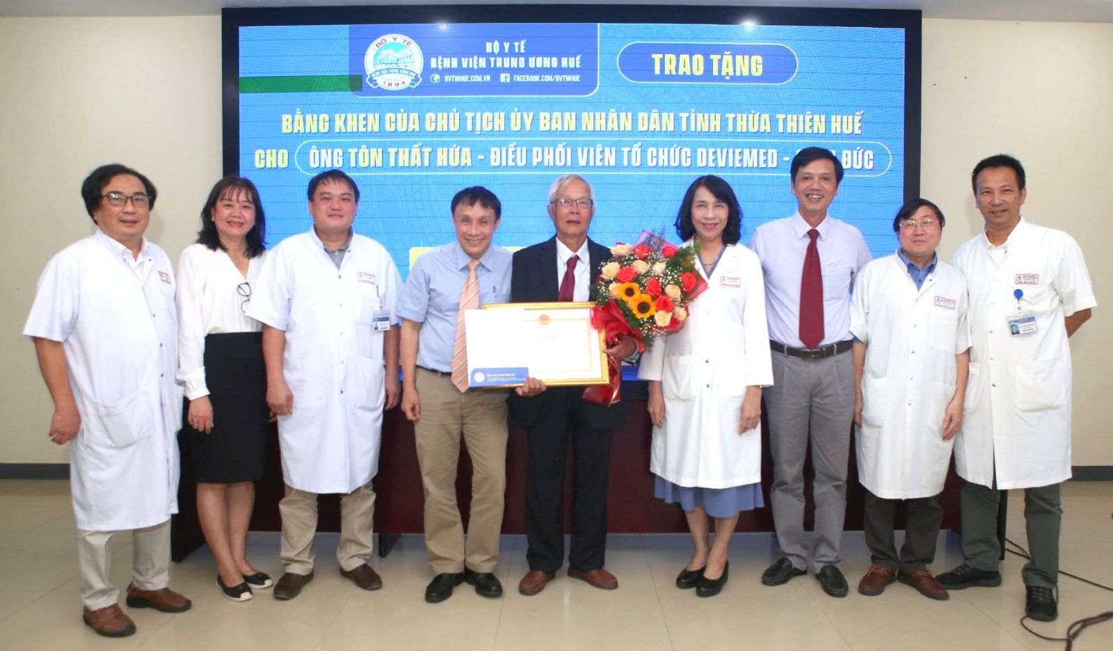 Tập thể đội ngũ lãnh đạo BVTW Huế chia vui cùng PGS.TS.Tôn Thất Hứa (đứng giữa). Ảnh: Thượng Hiển