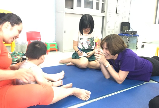 Trước đó vào ngày 10 và 17/4, Đoàn đã tham quan giao lưu trao đổi kinh nghiệm chuyên môn điều trị PHCN cho trẻ khuyết tật tại BV PHCN tỉnh. Dịp này, bà Anne Hill, đại diện Đoàn cám ơn sự quan tâm của đội ngũ y, bác sĩ BV PHCN tỉnh và mong những kỹ năng, kỹ thuật hai bên đã trao đổi được đội ngũ y, bác sĩ BV, PHCN tỉnh áp dụng điều trị, PHCN cho trẻ khuyết tật phát triển toàn diện.