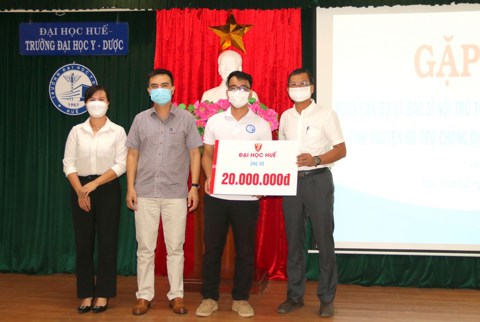 Trường ĐH Y - Dược, ĐH Huế tiếp tục cử đoàn công tác số 5 gồm 1 giảng viên và 11 bác sĩ nội trú tham gia cùng đoàn tình nguyện của tỉnh hỗ trợ tỉnh Bình Dương trong công tác phòng, chống dịch. Đây là đoàn tỉnh nguyện thứ 2 của nhà trường hỗ trợ tỉnh Bình Dương chống dịch.