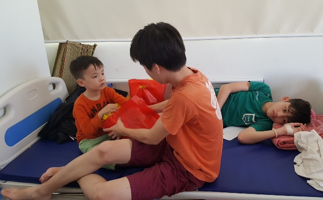 Những đứa trẻ bị bệnh máu không đông nâng niu quà trong ngày tết tại khoa