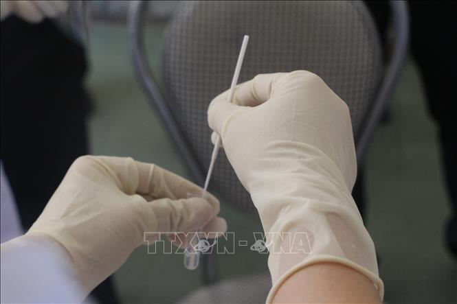 Lấy mẫu xét nghiệm COVID-19. Ảnh: Bích Huệ/TTXVN