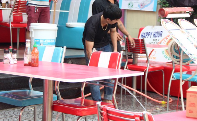 Người dân, chủ cơ sở kinh doanh ở khu phố Tây dọn dẹp, vệ sinh