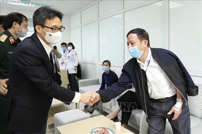 Phó Thủ tướng Chính phủ Vũ Đức Đam đến thăm, động viên nghiên cứu viên, tình nguyện viên tiêm thử nghiệm vaccine Nano Covax phòng COVID-19 giai đoạn hai tại Học viện Quân y (Bộ Quốc Phòng)