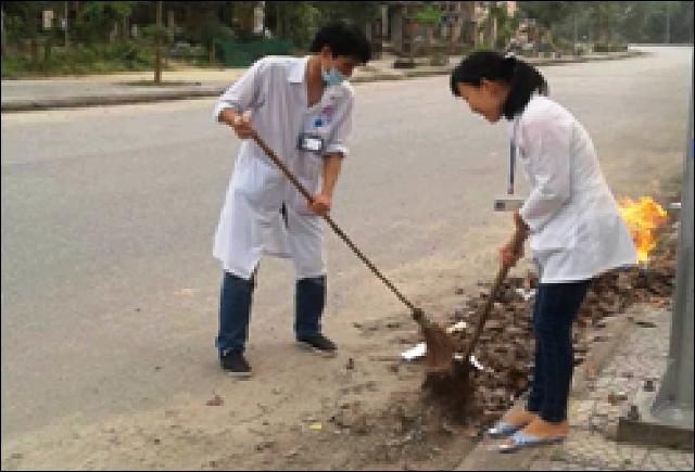 Đoàn viên lao động, nhặt rác thuốc lá tại khuôn viên Trung tâm Y tế Hương Trà