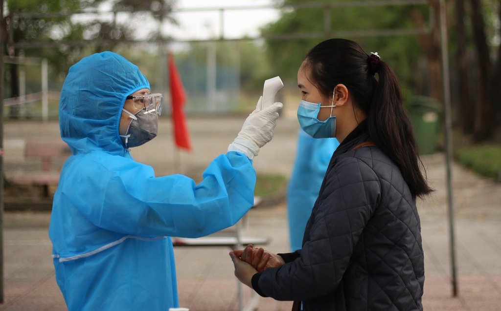 Sinh viên được đo thân nhiệt khi vào khu vực xét nghiệm