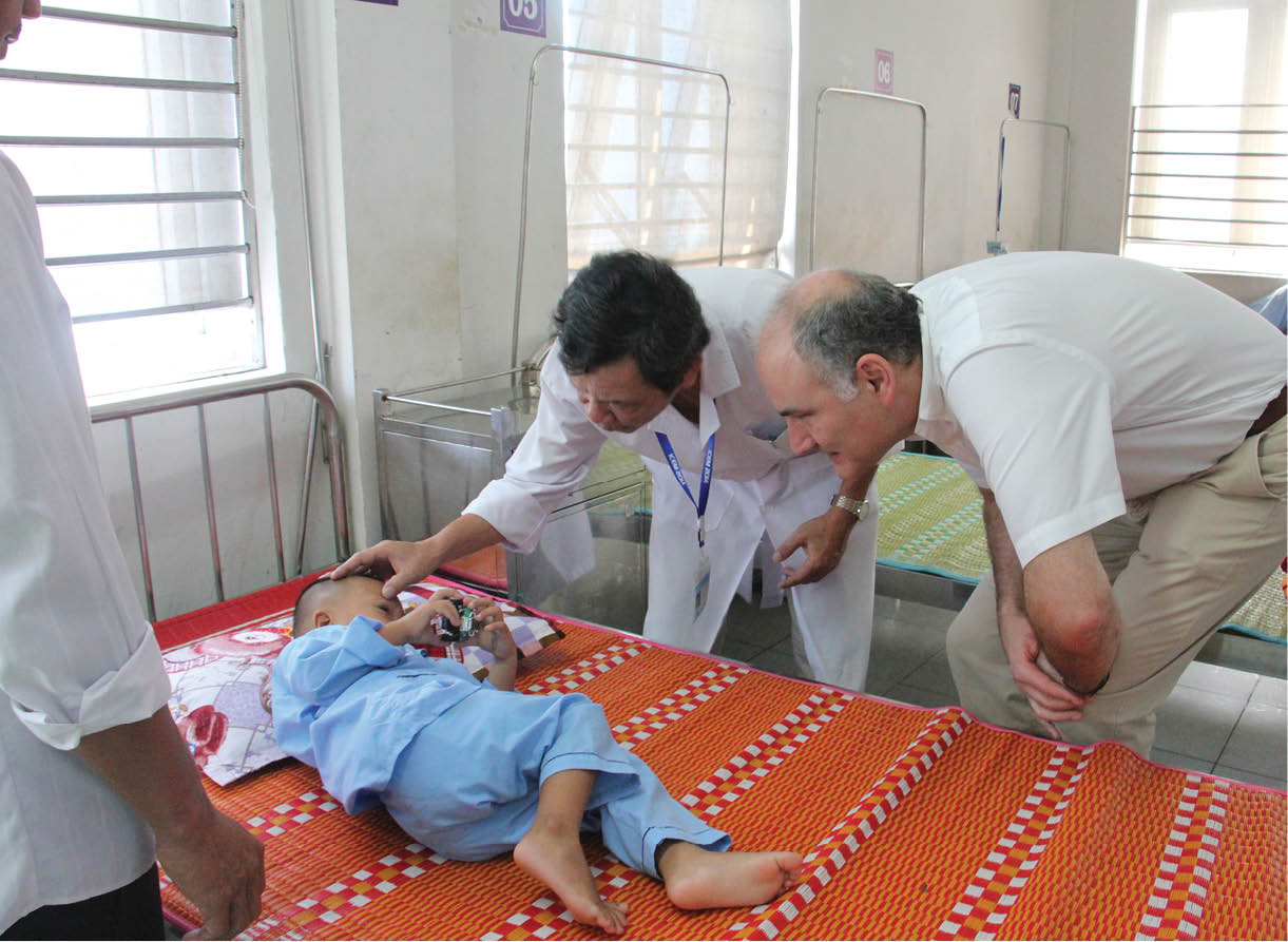 Các bác sĩ thăm hỏi một bệnh nhi điều trị nhãn khoa