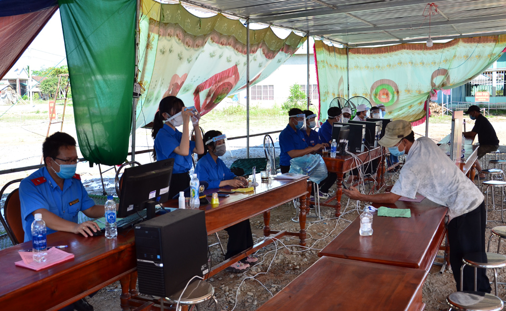 Khai báo y tế tại chốt kiểm soát dịch bệnh Phong Điền. Ảnh: Đức Quang