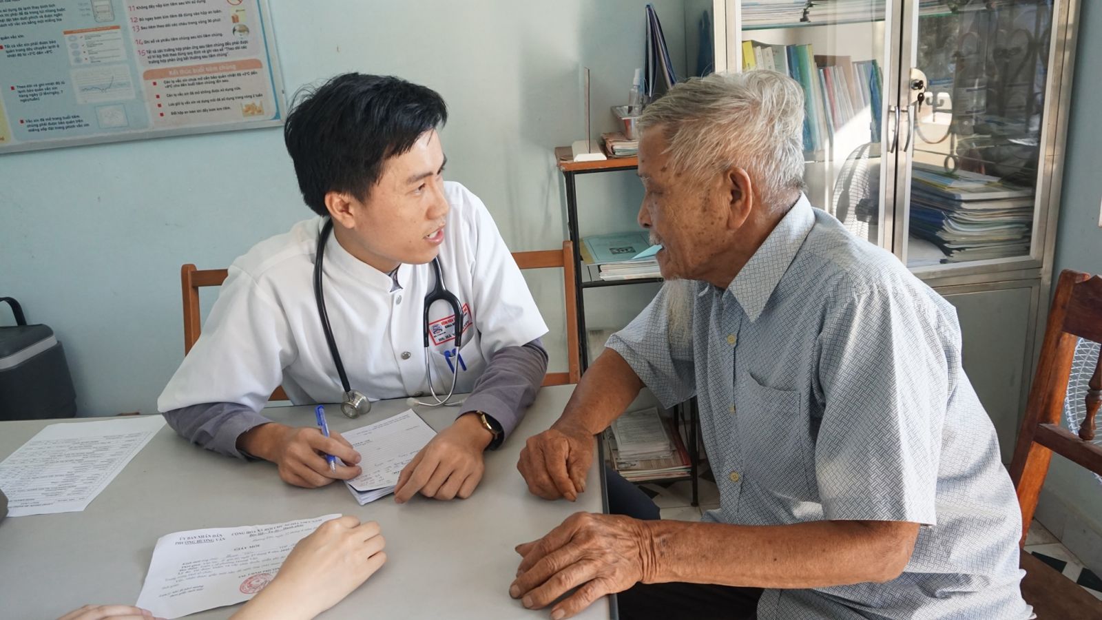 Bác sĩ trẻ của Bệnh viện Trung ương Huế thăm khám cho người dân