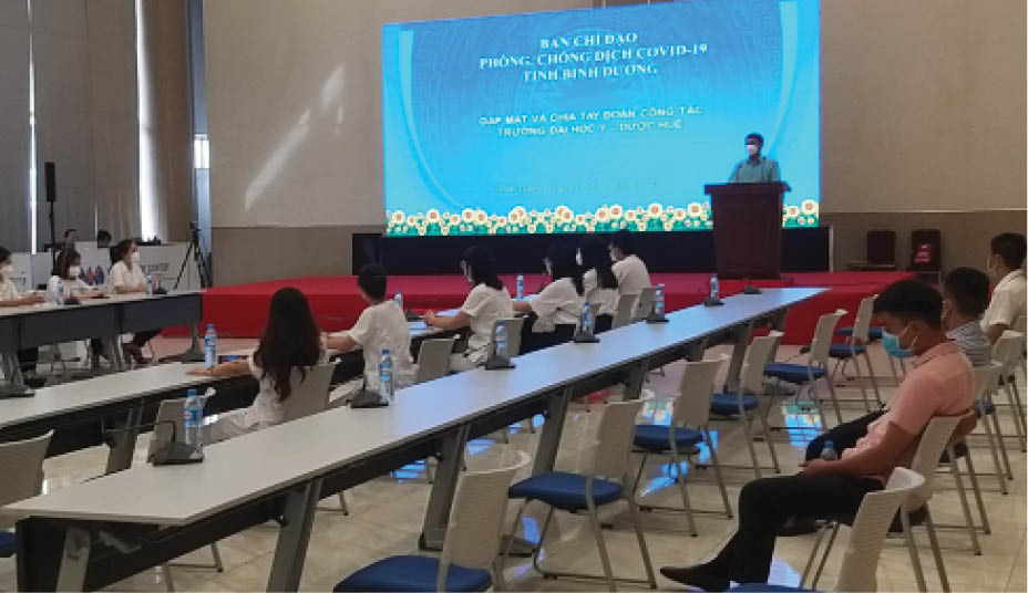 Thạc sĩ Võ Đức Toàn, Trưởng đoàn công tác Trường đại học Y - Dược Huế thay mặt đoàn cảm ơn lãnh đạo tỉnh, Ban Chỉ đạo phòng, chống dịch Covid-19 tỉnh Bình Dương đã quan tâm, hỗ trợ tinh thần và vật chất để đoàn hoàn thành tốt nhiệm vụ; phối hợp cùng đồng nghiệp mọi miền đất nước chung tay điều trị, kiểm soát dịch bệnh và học hỏi được nhiều kinh nghiệm. Đây cũng là những tháng ngày lưu nhiều dấu ấn tốt đẹp đối với các thành viên trong đoàn.