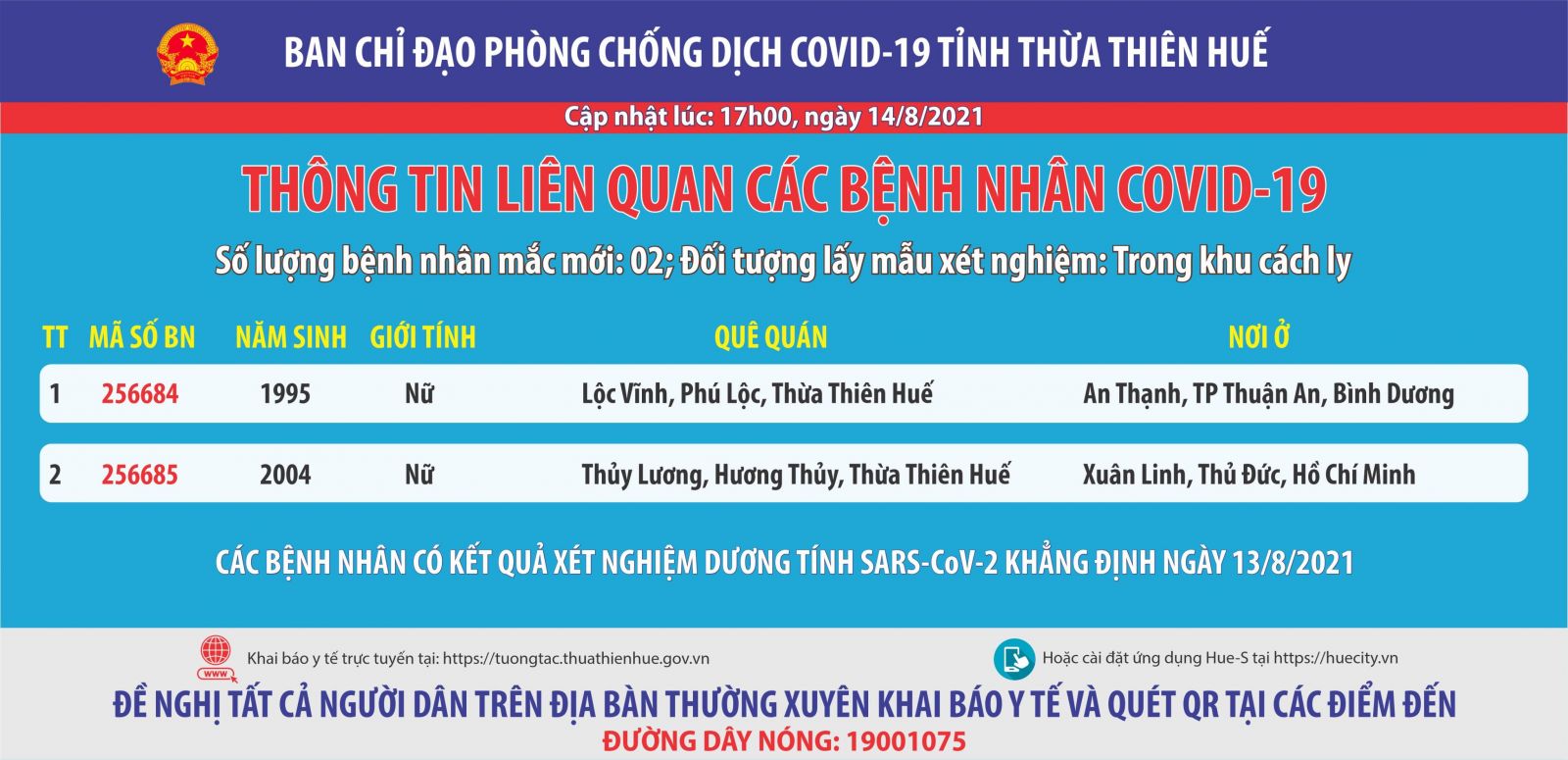 HNN.VN - Tính đến tối 14/8, Thừa Thiên Huế có 260 trường hợp ca bệnh COVID-19 ghi nhận từ ngày 28/4 đến nay. Trong số này, có 10 đã khỏi bệnh và 2 ca mới được xác định trong ngày 14/8.