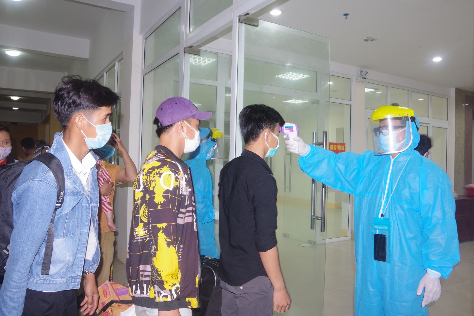 Từng người được đo thân nhiệt, kiểm tra y tế chặt chẽ. Sau khi được đo thân nhiệt để phân luồng đối tượng cách ly, ai có nhiệt độ cao hơn 37,5 độ sẽ được cách ly riêng, mọi người được tiến hành lấy thông tin cá nhân và lịch sử di chuyển để lưu vào hồ sơ dịch tễ.