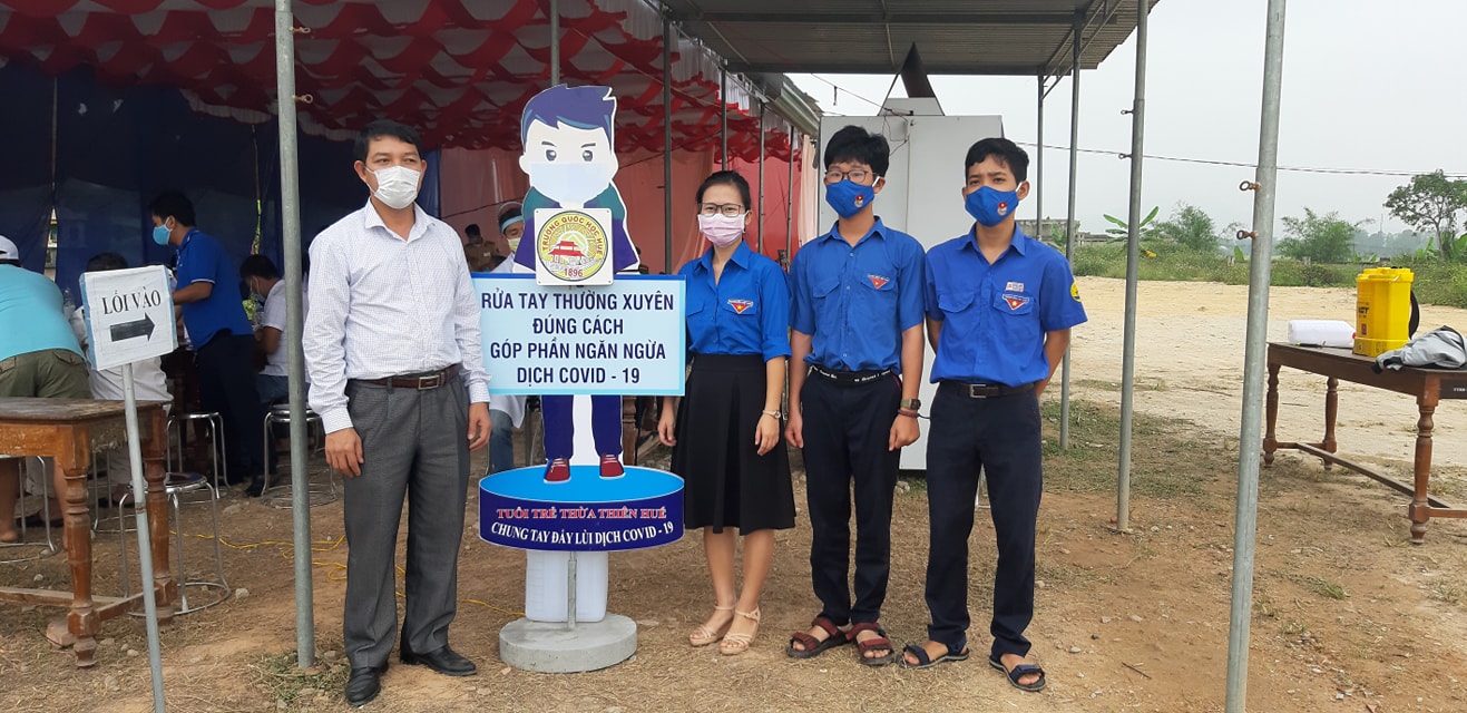 HNN.VN - Hưởng ứng tinh thần xing kích, Tháng thanh niên của tuổi trẻ cả nước, ngày 10/4, Đoàn Trường THPT chuyên Quốc Học đã trao tặng máy rửa tay tự động cho chốt kiểm tra y tế số 2 (TX. Hương Trà) và bệnh viện T.Ư Huế cơ sở 2.