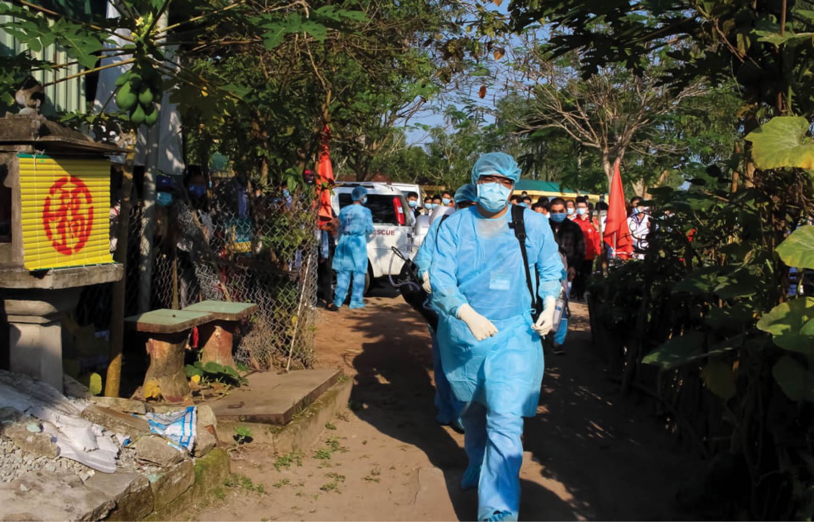 Bác sĩ Phan Nguyễn Văn Triều bộc bạch: “Nhanh phút nào là đỡ nguy hiểm cho người dân, cộng đồng phút ấy. Vậy nên chúng tôi bất chấp thời gian, không gian để thực hiện nhiệm vụ”. Với yêu thương và trách nhiệm đó, bác sĩ Triều, bác sĩ Sự và các đồng nghiệp, trong những lần thực hiện nhiệm vụ tại hiện trường an táng thi hài người qua đời tại vùng dịch (do rất ít người có mặt), đã ghé vai cùng thân nhân người đã khuất khiêng quan tài hạ huyệt.