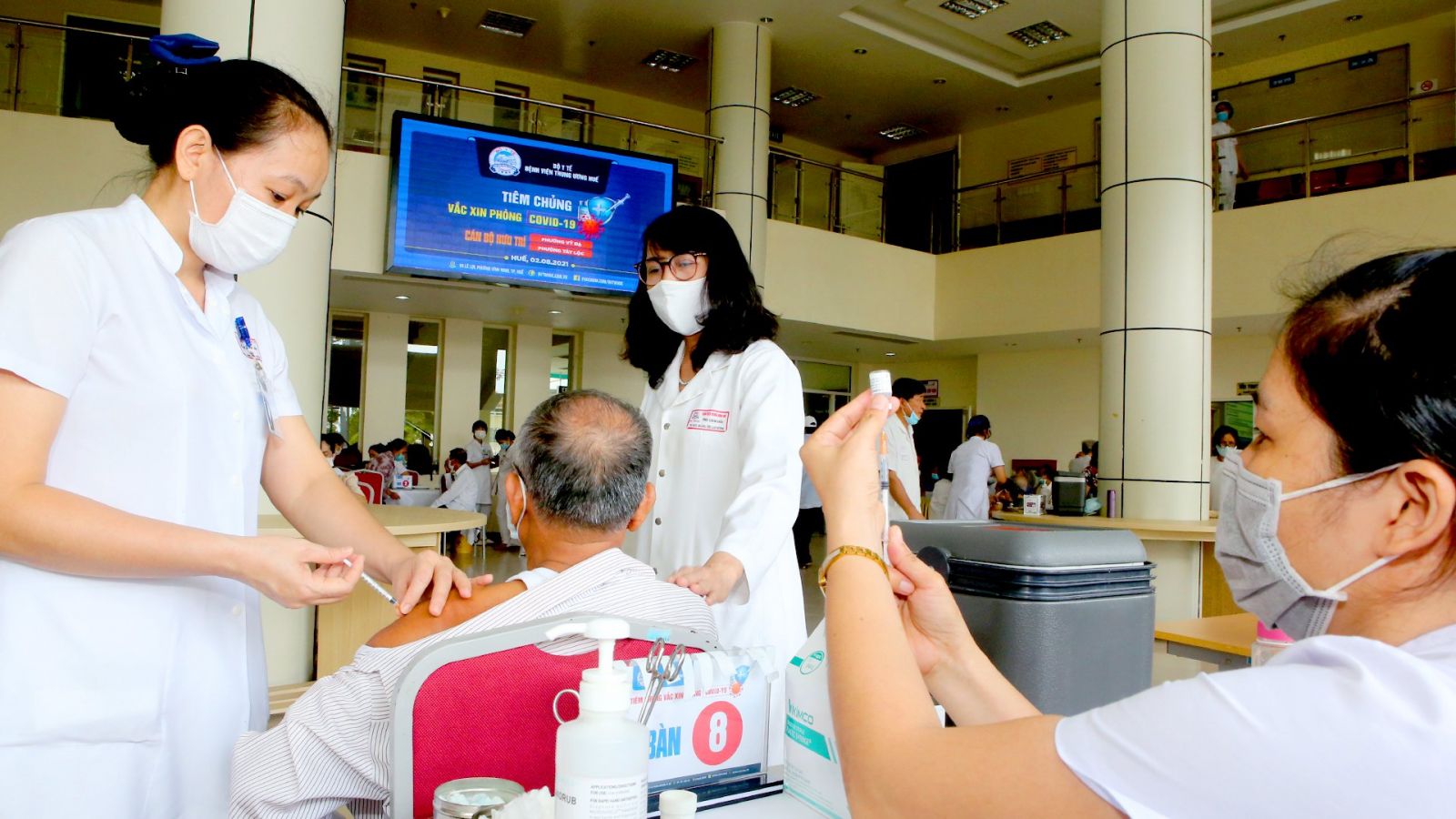 Tiêm phòng COVID-19 cho người hưu trí tại Bệnh viện Trung ương Huế