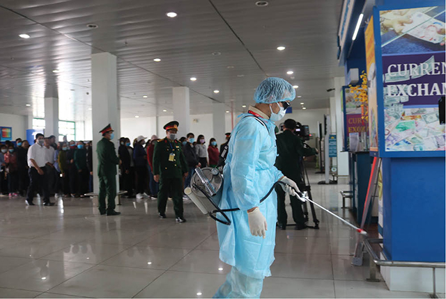 Diễn tập khử khuẩn tại sân bay trong tình huống đón người về từ vùng dịch