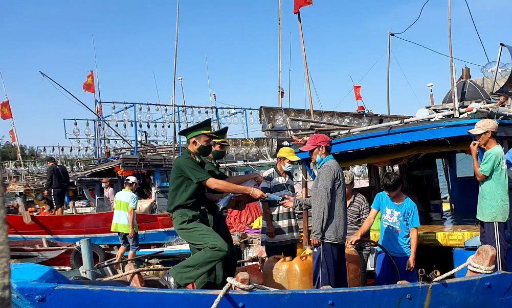 Lực lượng biên phòng tặng khẩu trang cho ngư dân