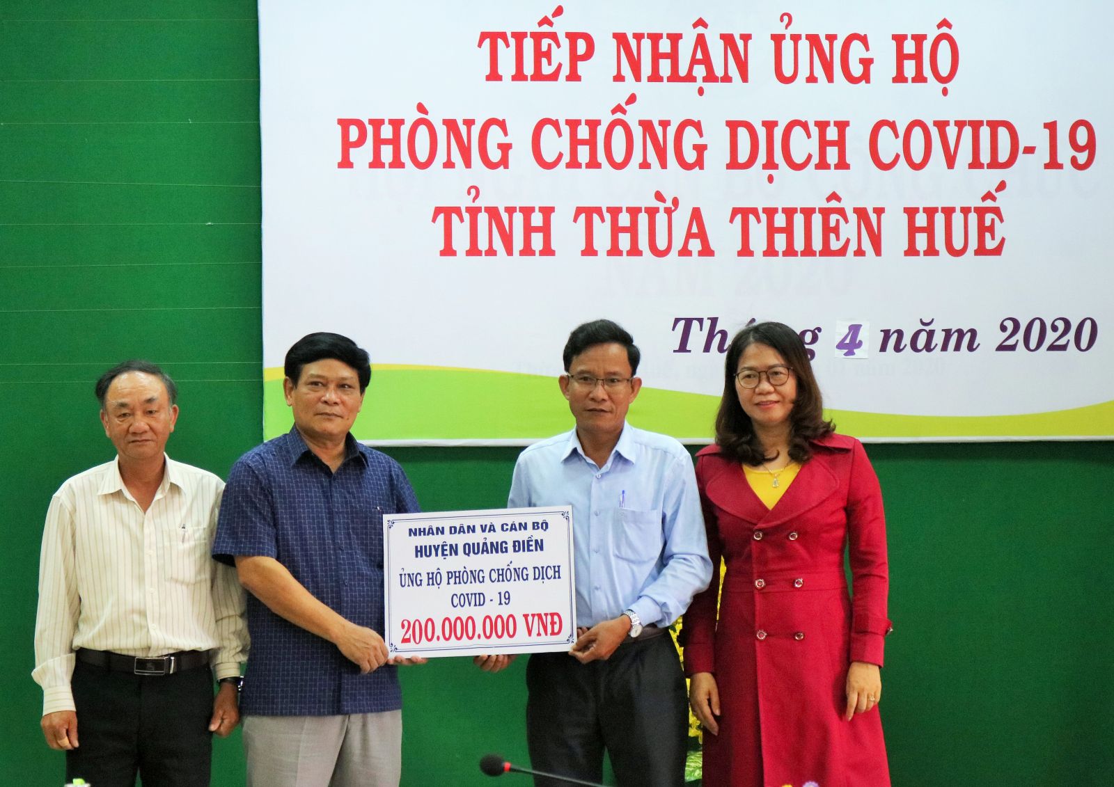 Đại diện Ủy ban MTTQ Việt Nam tỉnh tiếp nhận số tiền ủng hộ phòng, chống dịch từ các cơ quan, đơn vị