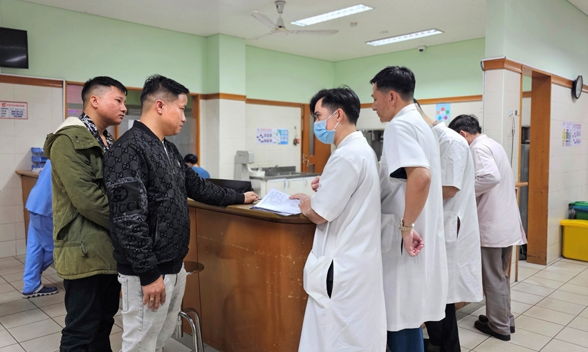 Tính đến thời điểm 30 Tết, BVTW Huế có gần 2.000 trường hợp đang điều trị nội trú. Tại Khoa Cấp cứu đa khoa (CCĐK), nơi đầu tiên tiếp nhận bệnh nhân (BN), các nhân viên y tế di chuyển liên tục. Tiếng xe đẩy chạy rèn rẹt, tiếng gọi tên, tiếng báo người nhà vào làm thủ tục khiến thời gian nơi đây như trôi nhanh hơn. Từ sáng đến 17h, khoa tiếp nhận 130 bệnh nhân. Chỉ trong vòng 15 phút tác nghiệp, chúng tôi ghi nhận 2 trường hợp tai nạn, 2 trường hợp đột quỵ, 2 trẻ sốt cao co giật được gia đình đưa đến…